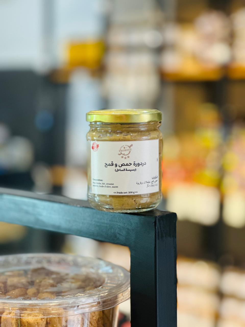 Une bsissa artisanale au blé et pois chiche, préparée dans nos cuisines selon la tradition tunisienne. Ce mélange nutritif de céréales torréfiées et légumineuses offre une source d’énergie naturelle complète et équilibrée, parfait pour vos petits-déjeuners gourmands ou vos pauses saines et revigorantes.